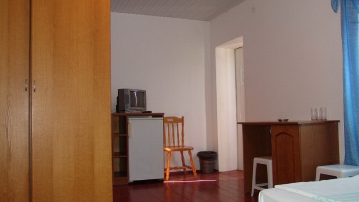 * Трехместные "полулюкс" (19 кв. м) (2 кат) - номер с удобствами (душ, умывальник, туалет, двуспальная и односпальная кровати, холодильник).
