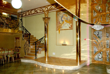 Номер люкс - роскошный номер, состоящий из двух комнат – спальни и гостиной, которую можно использовать как переговорную. Стиль номера полностью соответствует заявленному «русскому модерну».