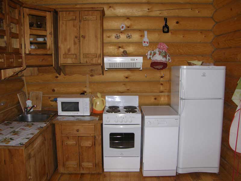 Отреставрированная рубленая 1-этажная изба, разделенная на 2 независимые друг от друга половины. Каждая половина избы с отдельным входом и своей открытой верандой. В каждой половине избы 3 комнаты - гостиная и 2 спальни, с 1,5-спальными кроватями в каждой комнате. Русская печь с лежанкой и камином. Гостиная с мягким уголком и обеденной зоной, спутниковое телевидение, DVD-проигрыватель. Кухонная зона с электроплитой и посудой, посудомоечная машина, микроволновая печь, чайник, холодильник. В каждой половине избы - электрическое отопление, горячая и холодная вода, душевая кабина, туалет.