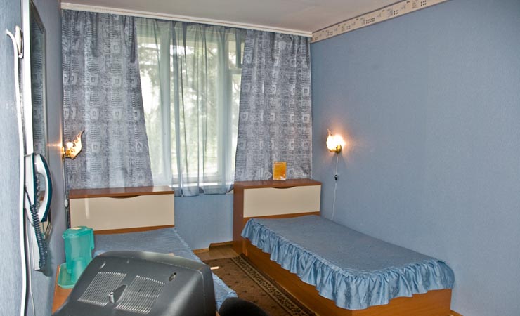 36 стандартных 2-местных номеров (площадь 12 кв. м). В номере: 2 полуторные кровати, прикроватные тумбочки, шкаф для одежды, зеркало с туалетным столиком, стулья или кресло, телевизор, телефон, ванная со шведскими душевыми кабинами, туалетными принадлежностями.
