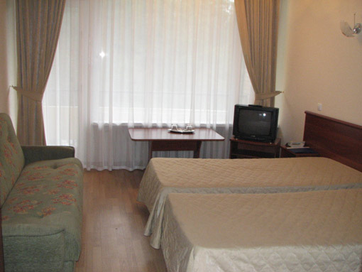 2-местные 1-комнатные классические номера (52 номера, 16 кв.м - две кровати, диван-кровать раскладной, журнальный столик, цветной телевизор (15 каналов), московский телефон, ванная комната (совмещенный санузел) с новой сантехникой, холодильник, лоджия).