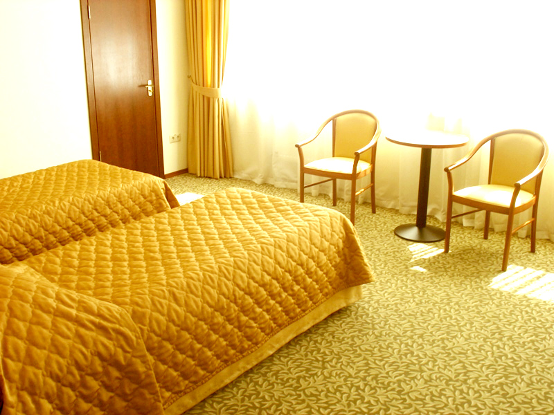 2-местные стандартные номера (площадь 22 кв. м, две 1,5-спальные кровати, санузел с душевой кабиной, фен, набор туалетных принадлежностей, телевизор, кондиционер, мини-холодильник);