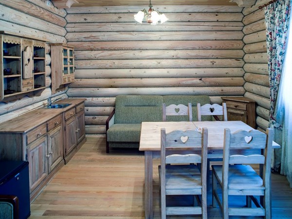 6-местный коттедж VIP (Первый этаж: Гостиная-столовая: кухонная мебель, холодильник, набор посуды, диван, два кресла, TV (кабельное телевидение).