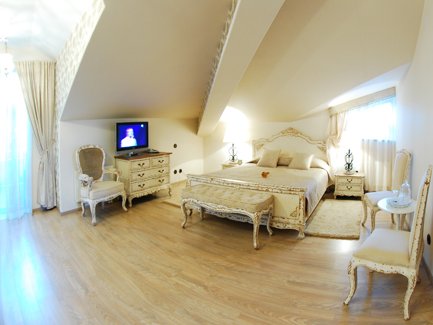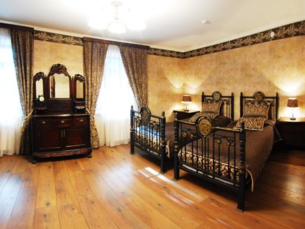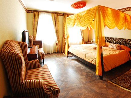1-2-местные люксы «золотые» (60 кв. м, 2-спальная кровать, душевая кабина, туалет, телевизор со спутниковым телевидением, телефон, широкополосный интернет, мини-бар, кондиционер, сейф, фен, косметический набор),