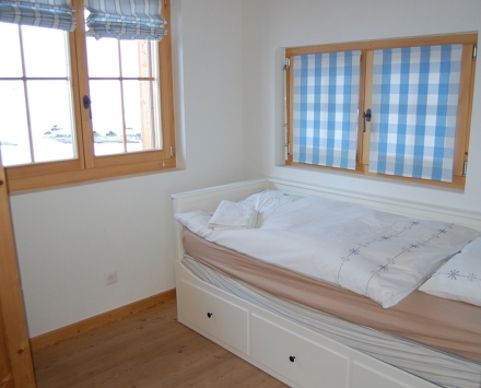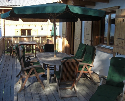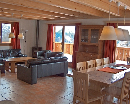 большая гостиная/столовая комната с открытым камином, спутниковым-ТВ и кабельным-ТВ (плоский экран), DVD, выход на террасу. Кухонный угол (4-х конфорочная плита, духовка, посудомоечная машина). Душ/туалет. На нижнем этаже: 2 спальни с 2 кроватями каждая. Душ/туалет. На верхнем этаже: 2 спальни с 2 кроватями каждая, выход на балкон. 1 спальня с двуспальной кроватью. Ванна/туалет. Большая терраса, на северную и на западную сторону. Очень красивый вид на горы и долину. Дополнительно предоставляется: утюг, детский стульчик. Интернет (wi-fi). Зарезервированная парковка.