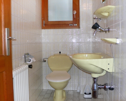 на первом этаже; ванная комната, отдлеьный туалет; гостиная/столовая на южную сторону с выходом на балкон, открытым камином и обеденным столом; кабельное телевидение; спальня на северо-восточную сторону с двумя кроватями, спальня на северную сторону с двухъярусной кроватью (длина 200 см) и раковиной, спальня на северную сторону; кухня (духовка, посудомоечная машина); балкон на южную сторону, вид на горы, округу и курорт; меблированная терраса; нет парковки; апартамент для некурящих; возможно проживание с одной собакой.