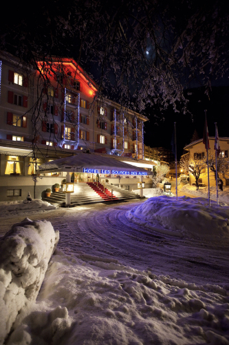 Небольшой роскошный отель, входит в международную ассоциацию престижных отелей и ресторанов Relais & Chateaux и является членом "Swiss Wellness Club". Отель расположен в здании XIX века, которое было полностью отреставрировано и обновлено в 1988 г. Les Sours des Alpes известен институтом красоты, терапевтическим и СПА-центром.