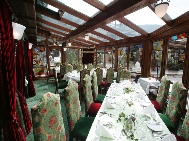 2 корпуса, соединенные крытым переходом; рестораны, 3 бара; конференц-зал; крытый бассейн (25х20 м) с гротом, одна из стен которого состоит из панорамных окон, а другая расписана панорамой горного пейзажа; пункт проката горнолыжного оборудования, крытый теннисный корт и корт для сквоша, бадминтон, настольный теннис, сауна, джакузи, массаж, солярий, турецкая баня, био-сауна, центр красоты, фитнес-зал; зимний сад, солнечная терраса, собственный парк, дискотека, детская комната.