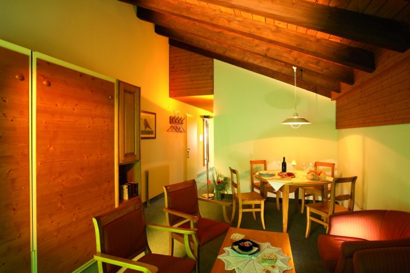 Апартаменты - 2-комнатные (1-4 чел) состоят из гостиной с двумя выдвижными кроватями, спальни с двуспальной кроватью, оборудованной кухни, также во всех апартаментах есть ванна/душ/WC, фен, мини-бар, сейф, радио, телефон, ТВ, видео; 3-комнатные (2-6 чел) – добавляется еще 1 спальня с двуспальной кроватью. Некоторые имеют вид на Маттерхорн.