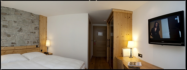 Фасад отеля создан из натуральной сосны и других природных материалов. Гостей ждет альпийский уют в сочетании с современным комфортом просторных номеров.
