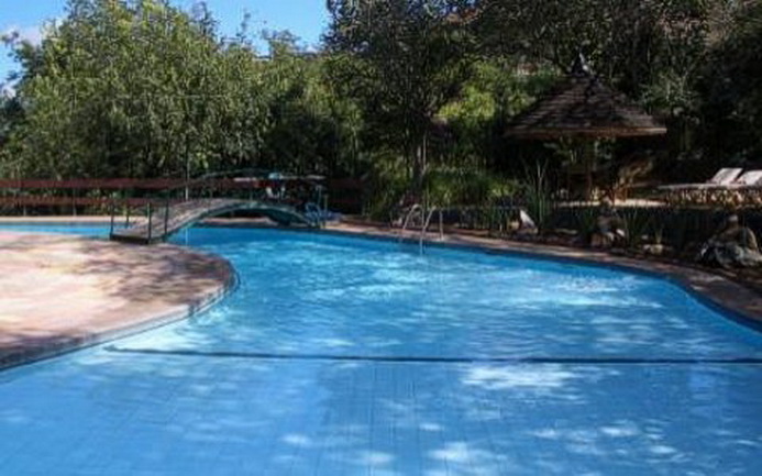 Отель расположен на холме в долине среди деревьев..