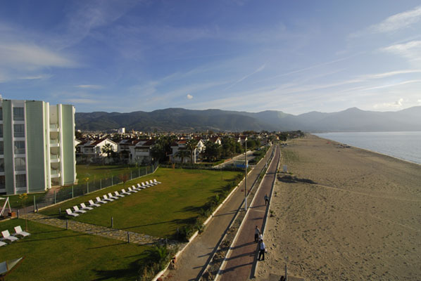 расположен в 100 км от аэропорта г.Измир,в 15 км от центра Кушадасы, на берегу моря.