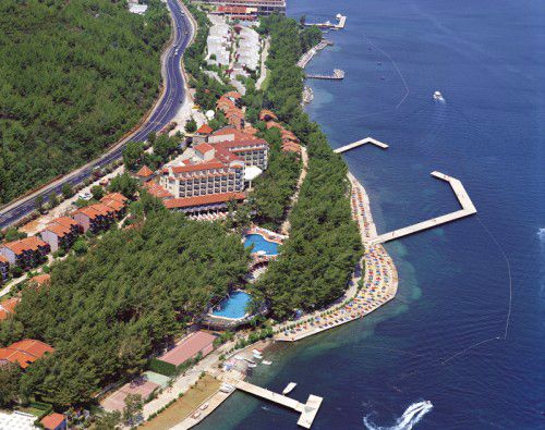 расположен в 90 км от аэропорта г. Даламан, в 6 км от г. Мармарис, в 2 км от поселка Ичмелер, на самом берегу моря.