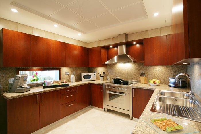 полностью оборудованная кухня, ванная комната при каждой спальне, большие балконы, спутниковое ТВ, радиоканал, телефон, доступ в интернет.