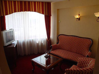 - Полулюкс - студио: Номер полулюкс - студио (спальня и гостинная), 2 ванные комнаты (душ с гирдомассажем и ванная), кондиционер, телевизор с цифровым телевидением, телефон, мини-бар, фен, WI-FI интернет.