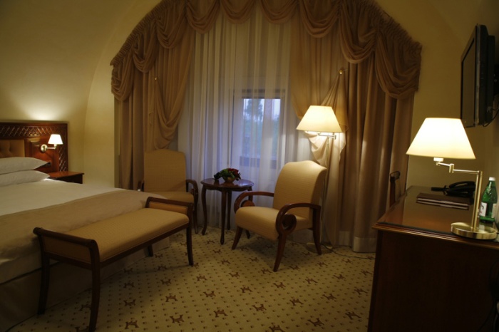 В отеле 26 эксклюзивных номеров, способных удовлетворить любые ожидания и пожелания относительно комфорта и удобства пребывания. Атмосфера роскоши и утонченности интерьера, старинная архитектура и историческое расположение оставят только приятные воспоминания. Каждый номер оснащен: системой кондиционирования и отопления, кабельным телевидением, электронным замком, мини-сейфом мини-баром, телефоном с выходом на междугороднюю и международную связь, изысканным набором мини-парфюмерии банным халатом, тапочками феном, доступом в Интернет.