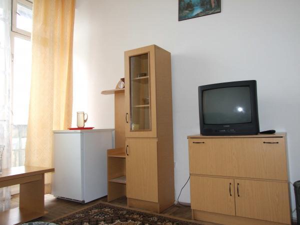 В номере: набор мебели, ТВ, холодильник, балкон, ремонт хорошего качества, 14 м.кв.