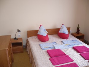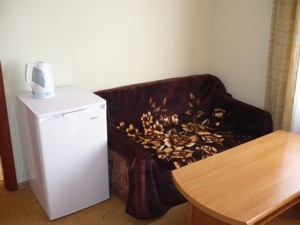 - 2-местный полулюкс (коттедж на 2 номера) с удобствами (туалет, умывальник, душ). В номере: 2 односпальные кровати, диван, спутниковое ТВ, холодильник, электрочайник, столовый сервиз, фен, 3 полотенца на 1 чел., ремонт хорошего качества, 20м2.
