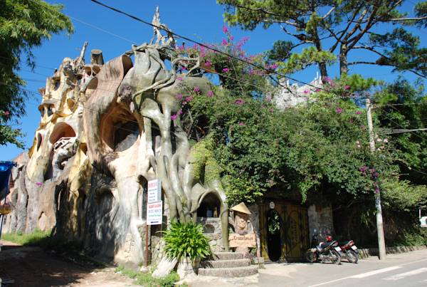 Во вьетнамском городе Далат расположилась сказочная гостиница Hang Nga или «Сумасшедший дом», как прозвали ее местные жители и туристы. Прозвище это оправдывает себя с лихвой. Необычное здание напоминает гигантское дерево, внутри которого сплел паутину огромный паук.