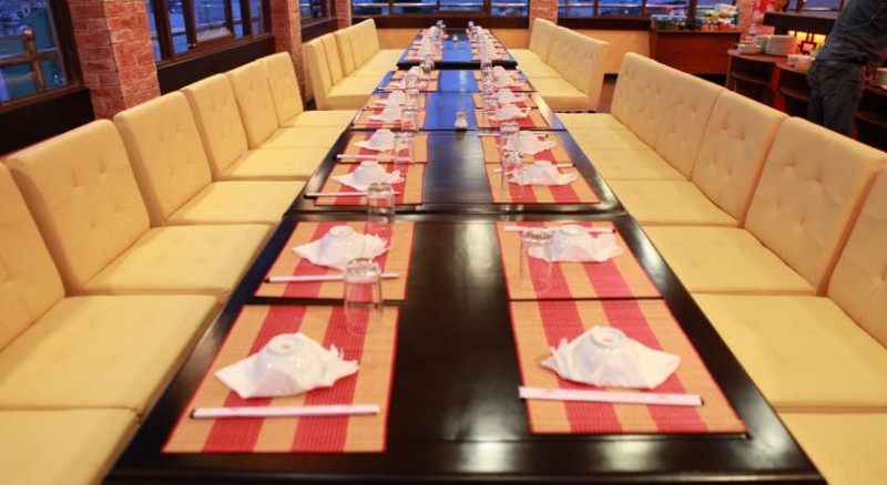 В ресторане, расположенном на верхнем этаже и рассчитанном на 100 человек, по запросу подаются завтрак, обед и ужин. Производится обслуживание номеров.
